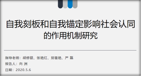 (通讯员 陈婉仪)2020年5月6日,第58期社会心理学例会采取线上会议的形式如期举行。严磊老师以及社心团队8名员工参加了本次例会。会议由谭金凤同学主持,向洲同学进行了毕业论文预答辩:“自我刻板和自我锚定影响社会认同的作用机制研究”。