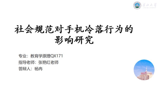 汇报结束后,同学们对杨冉同学汇报的内容进行了讨论,随后,三位老师发表了自己的观点和建议。首先,郑雪艳老师提出了两方面的思考和建议:(1)文献综述部分:内容偏少,手机冷落行为概念不清楚。中介变量(自我效能感和重要性感知)为选取的原因不明确;(2)汇报内容方面:需要对文章结果出现的原因进行阐述(讨论部分缺少)。严磊老师提出了四方面的思考和建议:(1)问题提出:为什么要研究手机冷落行为、自我效能感、重要性感知?强调本人的研究立场;(2)研究过程和方法:是在描述还是预测或者控制或者解释手机冷落行为;X1\X2两个变量谁对Y的影响更大,若单独做回归比较两个系数,需要进行回归系数大小的检验或决定系数;或者将X1\X2放在一个方程中比较大小;(3)文献综述:整体思路需要进行梳理。原因变量、结果变量、中介变量均需要在文献综述部分进行梳理讲解;手机冷落行为的社会规范不明确;(4)讨论:文章缺少讨论。张艳红老师作为杨冉同学的导师对杨冉同学的研究工作进行了认可,并提出了四方面的建议:(1)语言表达和写作需更学术化;(2)研究逻辑:四个研究间存在何种逻辑,变量间的关系在文献综述部分需进行呈现;(3)研究3的因变量是如何进行测量,需要进行阐述。研究四标题需要重新凝练;(4)自我效能感和重要性感知间是否有关系?若有为什么不一起研究?