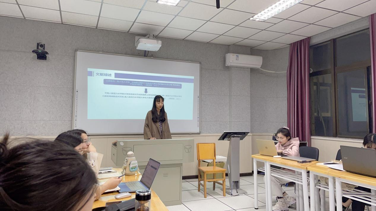 (通讯员 吴新丽)2021年11月1日,第97期社会心理学学术例会在11教201智慧教室举行。参加这次例会的有胡修银老师,郑雪艳老师和张艳红老师,以及研一至研三的同学们。本次会议由梁婷同学主持,由张竞月和廖七月两位同学进行汇报,张竞月汇报论文为《老员工未来自我连续性与从众消费心理的关系研究》,廖七月汇报论文为《交叉分类影响高阶层对低阶层的刻板印象》。