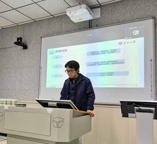 接着,张浩毅同学从问题提出、研究综述、研究设计、教育对策及创新点四个方面进行了汇报,探讨了基于社会认知理论和自我决定理论视角,锻炼社会支持对锻炼坚持的影响机制。研究一拟使用问卷法研究锻炼社会支持对初中生锻炼坚持的影响,并考察锻炼自我效能和锻炼承诺的链式中介作用,研究二拟采用实验法对锻炼社会支持促进初中生锻炼支持的关系进行研究。该研究可以完善锻炼社会支持影响锻炼坚持的心理模型,为制定提升初中生锻炼社会支持水平、从而促进锻炼坚持提供进一步理论支撑。