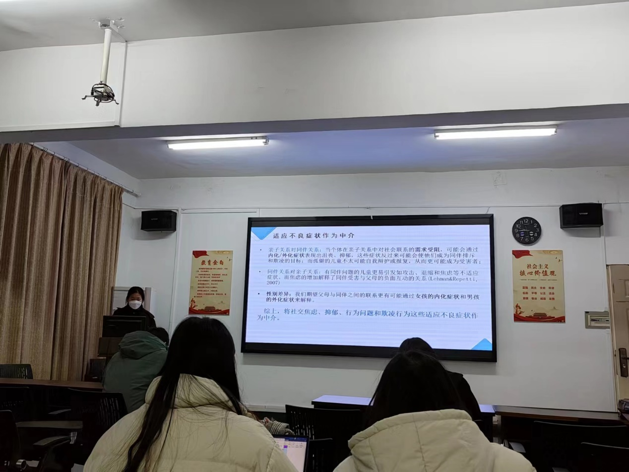 会议正式开始后,首先张泽同学为我们分享了来自于2020年《Development and Psychopathology》杂志上发表的一篇文献,文献的题目为《Caught in a vicious cycle?Explaining bidirectional spillover between parent-child relationships and peer victimization》,文章主要探究以包括社交焦虑、抑郁、行为问题和欺凌行为的适应不良症状为中介是否会对亲子关系与同伴关系之间的关系造成影响。在汇报过后张泽同学指出自己在准备例会汇报中存在些许问题,未能及时发现文章质量而导致没有达到例会分享的效果,认识到自己需要提前做足准备,不能拖延。连老师也对张泽同学汇报的形式提出了些许建议,认为张泽同学还需在PPT的呈现、汇报时的语调上做出改进。