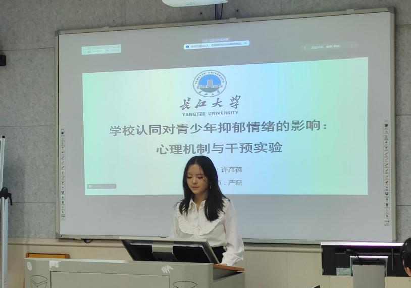 在交流讨论环节,针对许彦蓓同学的汇报,刘嘉玲同学对于检验前后调节变量的路径问题以及干预时间是否太短提出了疑问,许彦蓓同学对此问题进行了细致的解答,并表示在未来研究中会考虑前后测以及追踪访谈等方法。