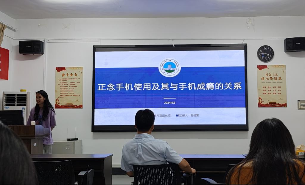 (通讯员 杨宇蓉)2024年6月3日晚7点整,本学期青少年网络心理与行为第十四期例会在五教203正式开始,朱晓伟老师、甘雄老师、周婷老师参加了本次例会,还有部分研究生和部分本科生也参与了本次例会中,会议过程十分热烈。