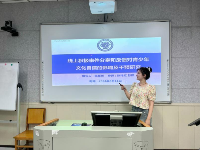 针对陈錾昕同学的汇报,老师们提出了以下几点建议:(1)线上积极事件分享和反馈这一变量的概念需进一步清晰;(2)被试的选取(职高)、无关变量的控制(分享字数的多少、分享频率的长短等)需进一步明确;(3)阐明自变量选择线上而非线下的原因;(4)各变量之间关系的阐述需进一步丰富。