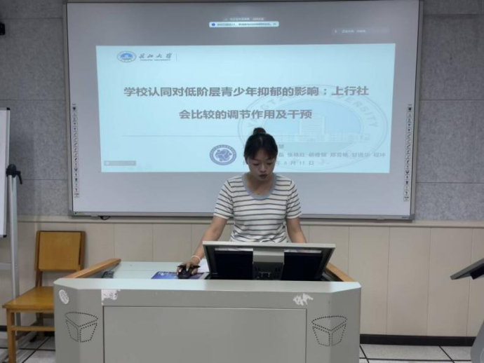 随着社会竞争的加剧和生存压力的增加,抑郁问题在全球范围内变得愈加普遍。研究显示,每一年龄阶段,都有一定比例的人群存在抑郁问题,其中青少年群体的抑郁比例更是高达34%。基于此,李澳慧同学从社会认同理论出发,考察了集团认同对低阶层青少年抑郁的影响以及上行社会比较的调节作用。研究一采用问卷法,探究公司认同对低阶层青少年抑郁的影响以及上行社会比较在其中的作用机制;研究二设计团辅干预,通过调整低阶层的社会比较方向缓解青少年的抑郁情绪。