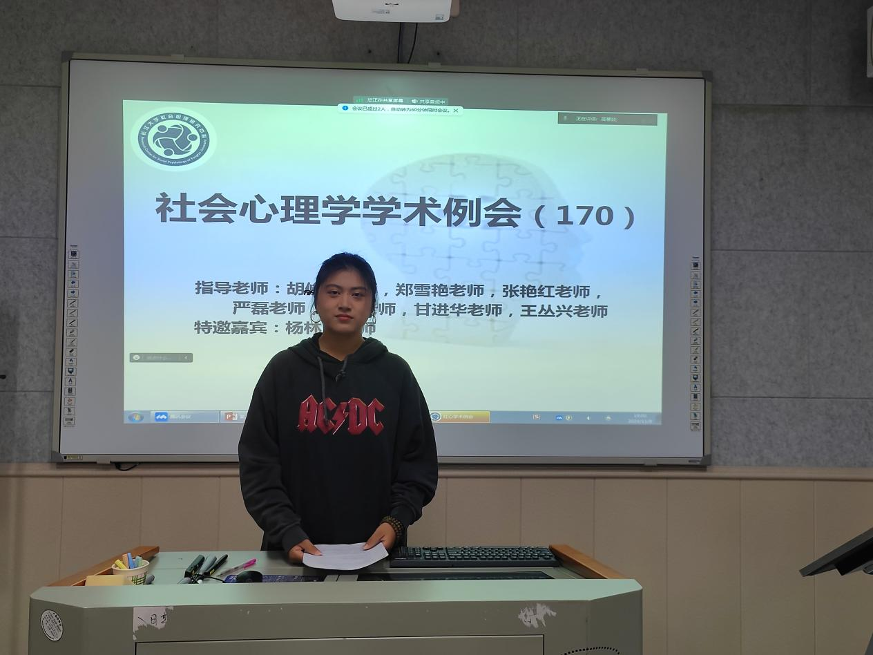 (通讯员:冷祥瑞)2024年11月8日19时至21时,第170期社会心理学学术例会在太阳成集团tyc东校区11教201室如期举行。本次例会采取线上线下相结合的形式,由高馨燚同学主持,主题为“文献分享汇报”。参加本次例会的老师有严磊老师、王丛兴老师、甘进华老师以及杨林川老师(三峡大学),员工有12位心理学研究生,24位本科生科研助理。