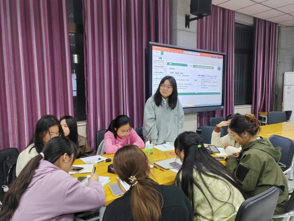 在教师点评环节:针对李雨田同学的文献分享汇报汇报,老师们先是肯定了李雨田同学所选取的文献内容题材新颖,接着便提到了可以值得思考的地方:1.文献中所做的12项研究以及中间变量的选择是否都有意义、在翻译文献时对“真实性”这一名词的解释是否全面;2.可以在阅读文献时对研究进行统合整理;3.阅读文献时明确研究目的,汇报时长要合理安排,可以在文献中选取对自己有益的部分合理运用。