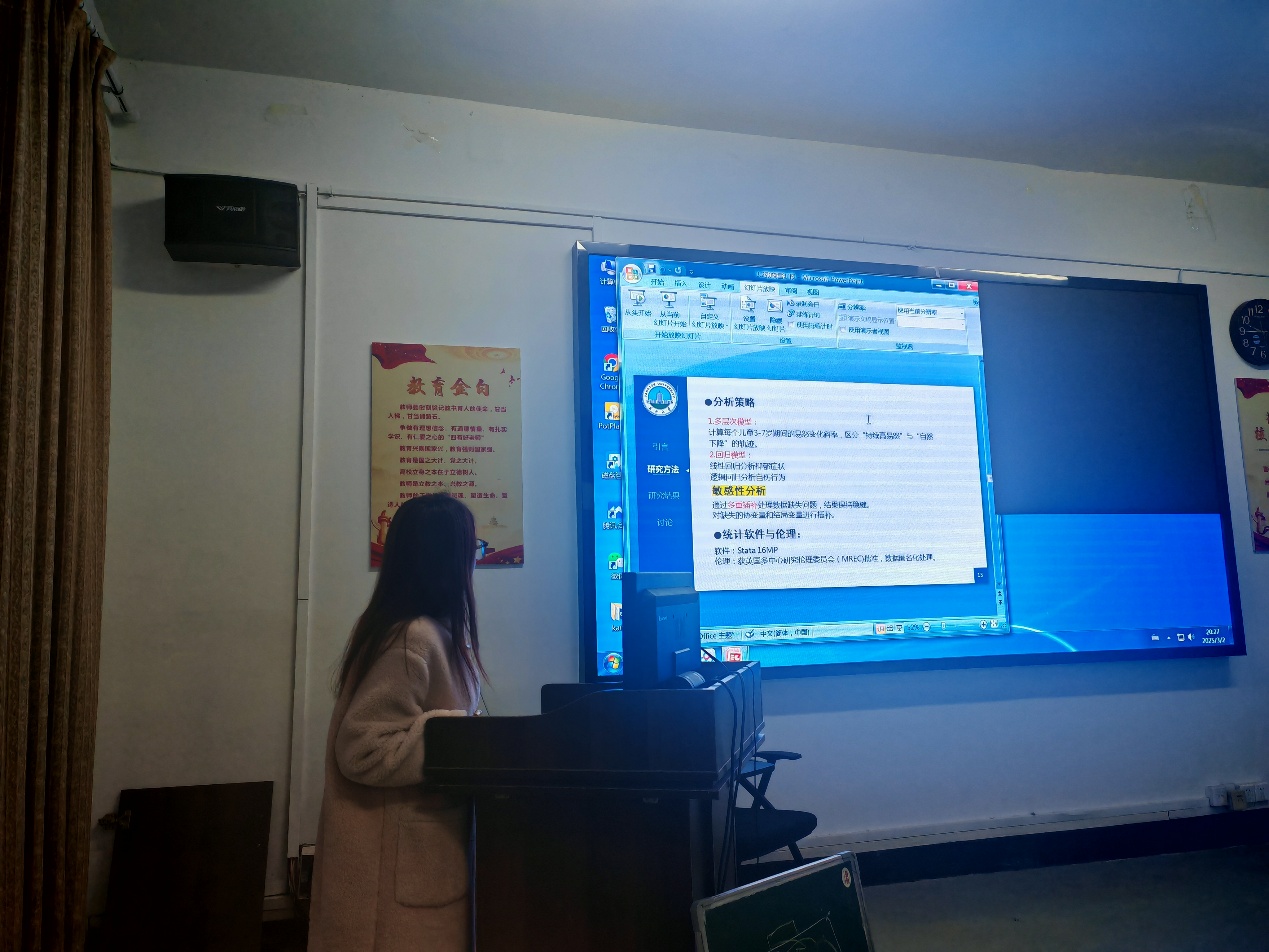 最后,张晓雪同学分享了 “Changes in Early Childhood Irritability and Its Association With Depressive Symptoms and Self - Harm During Adolescence in a Nationally Representative United Kingdom Birth Cohort” 的研究成果。张晓雪同学基于英国全国代表性出生队列数据,分析了幼儿期易怒情绪的变化及其与青少年期抑郁症状和自伤行为的关联。汇报后,朱晓伟老师指出该研究利用大规模队列数据的优势,同时也提出可以进一步深入分析不同因素之间的交互作用;甘雄老师则对研究中数据处理和分析方法进行了点评和指导。