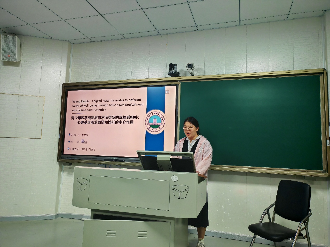 本次例会我们有幸聆听了三位同学带来的精彩汇报。首先,朱文林同学分享了《Young People's digital maturity relates to different forms of well-being through basic psychological need satisfaction and frustration》,他围绕主题进行了深入的阐述。汇报结束后,朱晓老师针对其研究中涉及的基础心理需求满足与受挫等相关内容进行了点评,提出了进一步完善汇报思路的建议,并鼓励同学们深入思考相关理论在实际研究中的应用。