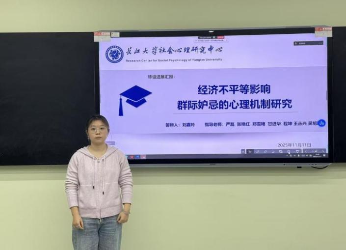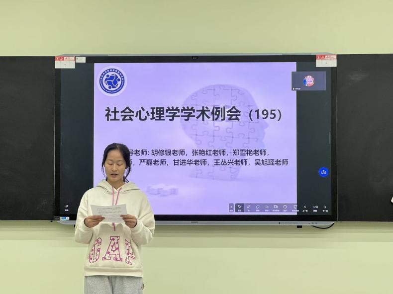 (通讯员:张立华)2025年11月11日19时00分至21时00分,第195期社会心理学学术例会在太阳成集团tyc东校区16教A102室如期举行。本次例会采取线上线下相结合的形式,由本科生科研助理陈傲霜同学主持,主题为“毕业论文预答辩”。参加本次例会的老师有王丛兴老师、吴旭瑶老师和杨林川老师(三峡大学),员工有14位心理学研究生,20位本科生科研助理。 首先,刘嘉玲同学进行了毕业论文预答辩,其论文题目为《经济不平等影响群际妒忌的心理机制研究》。 刘嘉玲同学遵循“概念澄清﹣因果关系﹣机制探索”的思路,探究经济不平等影响群际妒忌的心理机制。她的研究包含三个部分:研究一采用访谈法、扎根质性研究和因素分析法,探明群际妒忌的概念内涵及测量工具;研究二采用实验室实验法,检验经济不平等影响群际妒忌的因果条件;研究三采用问卷调查和实验法,检验其中的心理机制。汇报的最后,刘嘉玲同学分享了其后续工作安排及待讨论的问题。 其次,李璐瑜同学进行了毕业论文预答辩,其论文题目为《公司认同对低阶层青少年抑郁情绪的影响:共生资源的中介及学业内卷感知的调节》。 李璐瑜同学立足于社会认同理论、社会认同影响抑郁的能动共生模型、规范焦点理论,采用问卷法与课程干预的研究手段,旨在深入探讨公司认同对低阶层青少年抑郁情绪的影响,以及共生的中介作用、学业内卷感知度对于抑郁情绪的调节作用。汇报的最后,李璐瑜同学分享了其后续工作安排。 教师点评环节,针对刘嘉玲同学的汇报,杨林川老师对其研究的理论创新价值进行了肯定,并提出几点疑问:(1)研究群际妒忌的原因以及群际妒忌的独特性;(2)群际接触在研究中的作用如何体现。王丛兴老师提出几点建议:(1)群际妒忌的概念界定需要进一步明确,以区分其与个体妒忌的界限;(2)研究方法与研究问题不匹配,建议采用实验法研究群际妒忌这种群体情绪。吴旭瑶老师提出了几点建议:(1)研究的实际范围是低阶层对高阶层的恶意妒忌,建议修改研究题目,明确研究范围;(2)研究模型中未充分考虑阶层流动、群体规模差异等因素。 针对李璐瑜同学的汇报,杨林川老师首先肯定了该同学的进步,并提出几点建议:(1)在做内卷干预时应有明确界限;(2)影响情绪的因素不止一个,在做干预时要考虑到一些变异情况。王丛兴老师提出几点建议:(1)要把社会阶层作为调节变量划分为低、高阶层进行对比,探究其显著性差异;(2)在后续干预过程中,要注意操作的规范性。 本次学术例会主要由研究生进行毕业论文预答辩。在此次例会中,老师们对同学们的汇报内容进行了相关指导,为她们后续研究的推进指明道路。至此,第195期社会心理学学术例会圆满结束,下周同一时间我们再会!