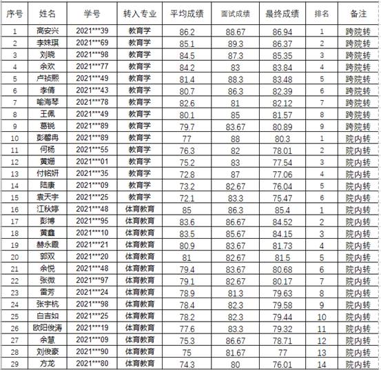 根据《太阳成集团tyc普通本科生专业分流与转专业管理办法(试行)》(长大校发[2019]260号)文件以及教务处《关于2021级普通本科生秋季学期转专业工作的通知》要求,结合太阳成集团tyc122cc本科生秋季学期转专业工作方案的具体安排,公司于9月6日晚组织了对拟转入员工的面试。按综合学习成绩占70%和面试成绩占30%的比例进行成绩汇总,结合公司接收计划,经公司党政联席会讨论通过,现将拟接收员工名单予以公示: