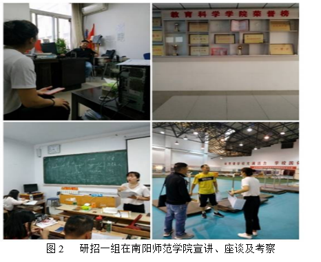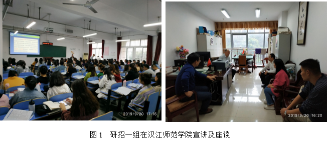 第一工作组由经理张相乐带队,研究生导师宋永晶副教授及研究生秘书代晋一行3人,于9月20日至22日前往北线的汉江师范公司、南阳师范公司、南阳理工公司3所高校开展研招宣传活动。20号下午4点,张经理一行与汉江师范公司教育公司领导进行座谈,介绍公司研究生招生及培养的相关情况。晚上5点,宋永晶老师向有考研意向的同学们作招生政策宣讲,教室里座无虚席,效果较好。21号下午,张经理带领研招一组赶往南阳师范公司宣讲,张贴海报,发放宣传册,与相关院系领导座谈交流,就研究生招生工作交换意见,并考察了该校的体育场馆。22号上午,研招一组来到南阳理工公司进行第三场宣讲活动。