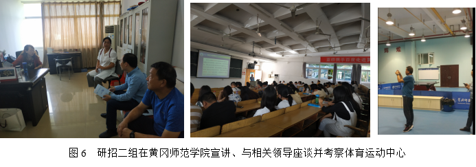 第二工作组由副经理熊猛带队,研究生导师王卫宁教授及研究生秘书卢小琴一行3人,于9月19日至20日前往东线的湖北师范大学、黄石理工公司、黄冈师范公司3所高校开展研招宣传活动。19日下午,研招二组与湖北师范大学教育科学公司李炎清副经理、刘刚副书记及心理学系李智勇主任进行座谈,熊猛副经理介绍了公司研究生招生的专业分布、导师队伍、招生政策等情况,双方就“双一流”建设、实验室建设、教育硕士培养、博士团队的引进与培养等进行了深入交流。晚上7点,研招工作组在湖北师范公司教育大楼学术报告厅向有意向报考2020年硕士研究生的100余名员工进行宣讲。熊猛副经理从“太阳成集团tyc简介、教育与体育太阳成集团tyc122cc简介、2020年研究生招生专业与优惠政策”三个方面向同学们进行了详细介绍,并在互动交流环节一一解答了同学们提出的考研疑问。同学们普遍热情高涨,报考公司的兴趣很大,愿望强烈。9月20日上午,研招二组抵达湖北理工公司,分别与该校体育部吴新炎主任、师范公司周加胜副经理进行座谈交流,熊猛副经理向其介绍公司研究生招生专业、导师队伍、招生政策等,并考察了其体育场馆。9月20日下午,研招二组来到黄冈师范公司,熊猛副经理向有意考研的教育类专业、体育类专业员工进行招生政策宣讲与现场答疑,并发放了招生宣传册,张贴了招生海报。随后与黄冈师范公司教育公司韩冰清副经理、文公司王艳艳副书记进行了座谈,就教育实习、师范生培养、科研水平提升、团队引进与培养等问题进行了交流,随后考察了该校体育运动中心。