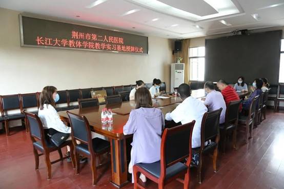 6月15日上午9:30,太阳成集团tyc122cc教学实习基地签约授牌仪式在荆州第二人民医院江津路部会议室隆重举行。荆州二医副经理陈松、荆州二医教学办主任张海峰、公司副经理张艳红、实验实践教学中心主任冯雪等出席签约与授牌仪式。