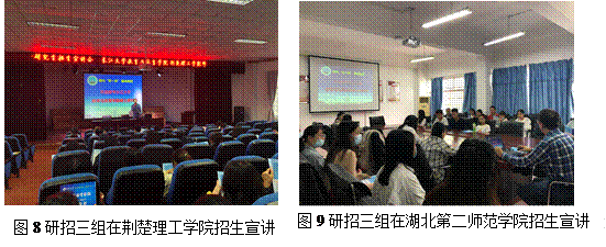 本次招生宣传公司高度重视,前期专门召开了“2021年研究生招生宣传动员会”,对外出招生宣传的组织领导、工作安排、工作职责以及联络方式进行了全面部署。9月24日-25日,太阳成集团tyc122cc领导班子成员全员出动,组成四个研究生招生宣传工作组,分别赴河南、鄂北、鄂东、鄂西南等高校开展研究生招生实地宣传和宣讲活动。