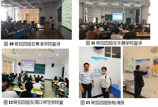 第四工作组由副经理杜光友带队,研究生导师宋永晶老师、朱晓伟老师一行3人,于9月24日至25日前往河南线的黄淮公司、许昌公司、周口公司等3所高校开展研招宣传活动。每到一处,杜光友副经理带领老师们张贴海报,耐心回答考生的疑问。硕士生导师宋永晶老师从“太阳成集团tyc简介、教育与体育太阳成集团tyc122cc简介、2021年研究生招生专业与优惠政策”三个方面向同学们进行了详细介绍,并在互动交流环节一一解答了同学们提出的考研疑问。同学们普遍热情高涨,报考公司的兴趣很大,愿望强烈。