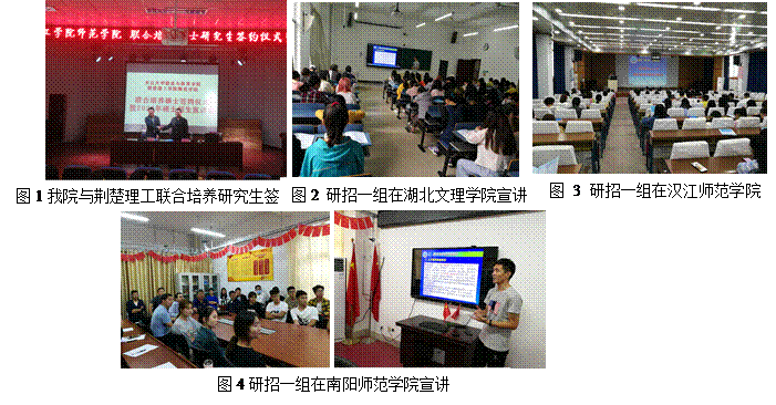 第一工作组由经理张相乐带队,研究生导师李臣教授及王志伟老师一行3人,于9月25日至28日前往北线的荆楚理工公司、湖北文理公司、汉江师范公司、南阳师范公司4所高校开展研招宣传活动。经前期不断探索研究生教育的新机制和新模式,公司与荆楚理工公司师范公司就研究生招生、培养、日常管理等方面达成了一致,9月25日下午举行了联合培养协议签字仪式,双方签署了合作协议。随后,张经理一行马不停蹄地抵达湖北文理公司,与教育公司领导进行了座谈,介绍公司研究生招生及培养的相关情况。下午5点,王志伟老师向有考研意向的同学们作招生政策宣讲,教室里座无虚席,效果很好。26号上午,张经理带领研招一组赶往汉江师范公司宣讲,张贴海报,发放宣传册,与相关院系领导座谈交流,就研究生招生工作交换意见,并考察了该校的体育场馆。27号下午,研招一组来到南阳师范公司进行第三场宣讲活动。