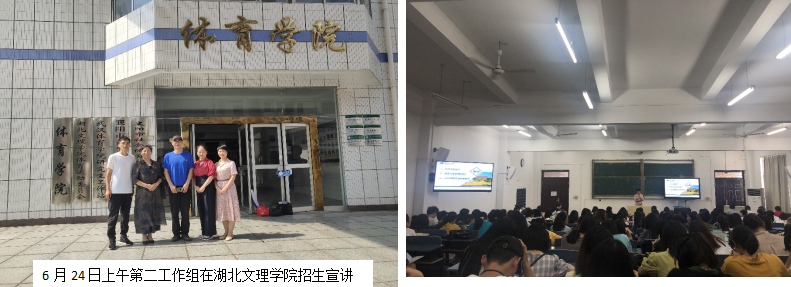 第二工作组由副经理张艳红带队,研究生导师徐发秀、王志伟老师一行3人于6月23日-24赴荆楚理工公司师范公司、湖北文理公司的体育公司、教育公司开展研招宣传活动。张贴海报,发放宣传册,徐发秀老师向有考研意向的员工作招生政策宣讲,张艳红经理和王志伟老师回答考生提问。工作组还与相关院系领导座谈交流,就研究生招生工作交换意见。