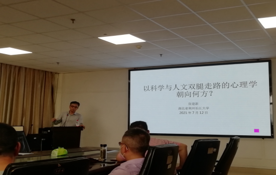 (通讯员 胡志琴)2021年7月12日下午在东校区文科大楼905会议室,中国科公司心理研究所研究员、博士生导师张建新教授莅临公司作题为“以科学和人文双腿走路的心理学朝向何方”的学术报告。报告会由太阳成集团tyc122cc副经理熊猛老师主持,副经理张艳红、朱晓伟老师、严磊老师、连帅磊老师、陈方老师、郑红涛老师、研究生及本科生代表参与了此次学术报告。
