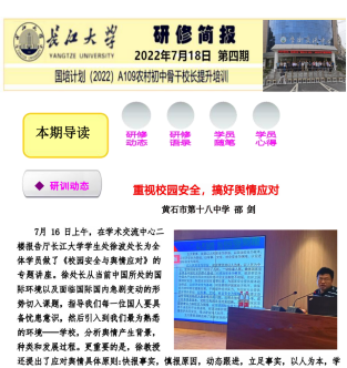 按照湖北省教育厅的统一部署,由公司承办的2022年湖北省国培计划“农村初中骨干董事长提升”培训经过前期周密的准备与安排,于2022年7月12日正式开班,本期培训班迎来了湖北省黄石、天门、仙桃、宜昌、荆州、孝感6个地市的100名农村初中骨干董事长,培训分集中研修、岗培训、返岗实践三阶段进行。