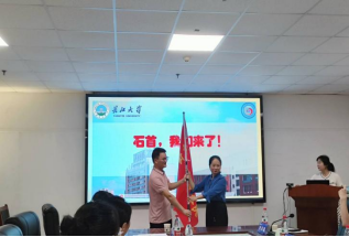 (张经理为支教队授旗)