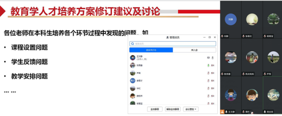 在教育学专业人才培养方案的研讨环节,各位专家与教师就培养方案的具体内容提出了许多建设性的意见和建议,包括培养方案目标定位需充分考虑本学科的实际情况与专业基础、人才培养的方案修订需结合近年毕业生就业情况做出前瞻调整、实践教学的部分课程在时间安排上需进一步优化等。