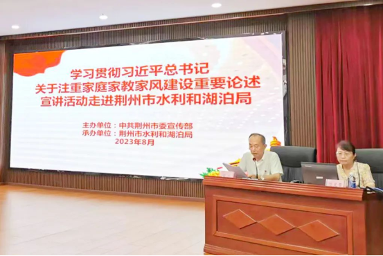 8月11日,公司陈竞蓉教授作为荆州市“荆津乐道”党的创新理论社科专家成员赴市水利和湖泊局开展“荆津乐道”公益宣讲。陈竞蓉教授以《培育优良家风 涵养时代正气》为题,从“为什么:不忘初心、方得始终;是什么:思想引领、守正创新;怎么做:严于律己、严格家教”三个方面阐述了家庭家教家风建设的重要意义和现实要求,主题鲜明,内容丰富,说理透彻,引人深思。