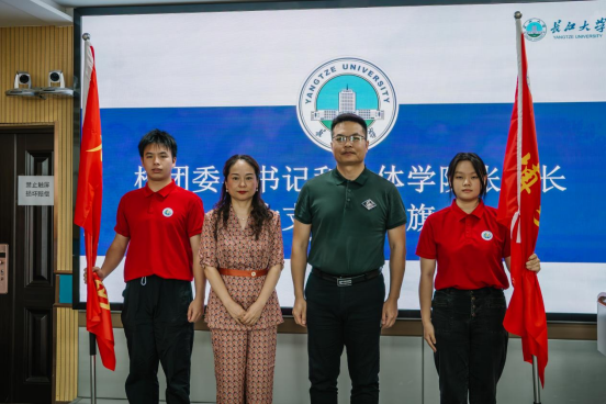 校团委书记毛德波和公司经理张艳红为支教团授旗,出征仪式在振奋人心的出征曲中圆满结束。