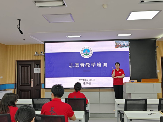 当天下午,任雯婷老师和小学教育研究生熊孝楠分别为志愿者开展了安全教育培训和教学培训。