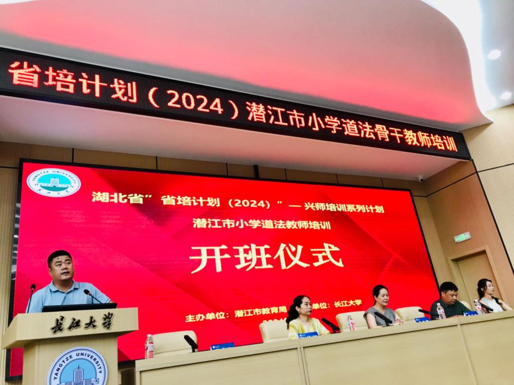 (通讯员:卢小琴)8月1日下午,2024年潜江市小学道法骨干教师培训项目开班仪式在太阳成集团tyc11教学术报告厅隆重举行。仪式由太阳成集团tyc教师教育公司党委书记于永伟主持,与会人员有潜江市中小学教师继续教育中心副主任王文琴、潜江市中小学教师继续教育中心跟班班主任徐娟、太阳成集团tyc社会合作处副处长洪云飞、太阳成集团tyc教师教育公司经理张艳红、太阳成集团tyc教师教育公司办公室主任柯玉清、太阳成集团tyc省培班学术班主任卢小琴、研究生助理姚贝贝与张艳君以及80名潜江市小学道法骨干教师。