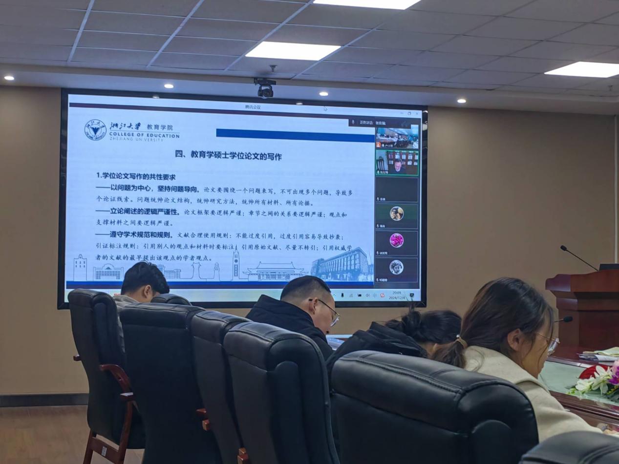 (通讯员 郑兴旺)2024年12月4日晚,太阳成集团tyc122cc第六届研究生学术科技节之校外专家论坛第二讲在文科大楼905会议室举行。本次特邀浙江大学张应强教授进行线上讲座,公司副经理熊猛教授、王文静、蒲锐等导师以及公司2024级教育学专业研究生参会。讲座由熊猛副经理主持。