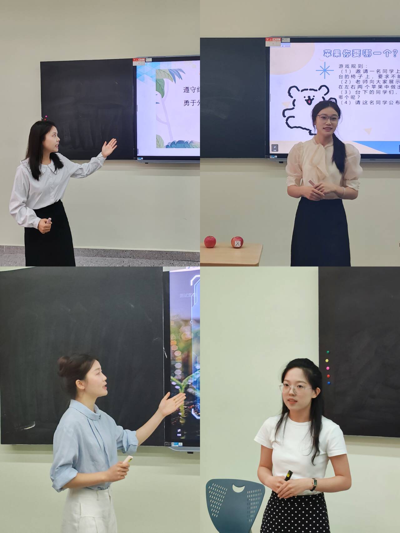 随后,17位参赛选手围绕心理健康教育六大主题,通过生动的课堂设计、丰富的教学手段和深入浅出的讲解,呈现了各具特色的教学片段。评委老师从教学内容、教学方法、课堂互动及教学效果等多个维度进行综合评分。经过激烈角逐,最终李韵佳、张文阳同学获得一等奖,张泽、李雨田、李璐瑜同学获得二等奖;皮虹远、李钰洋、韩馨洋、谢灿、夏领域、王雅妮同学获得三等奖,张晓雪、陈维星、管师师、朱文林、胡双双、陶燕林获得优胜奖。其中,荣获一等奖和二等奖的5名选手,将代表公司参加田家炳杯全国竞赛。