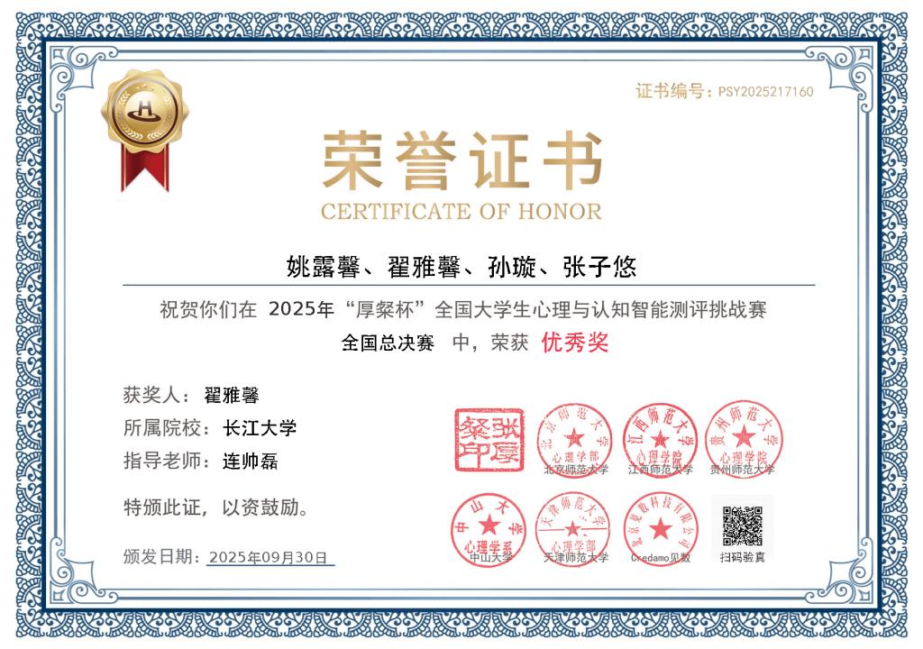 本次大赛以“心理学引领科学测评,智能化护航人才发展”为宗旨,旨在深化员工对心理与认知测评原理与方法的理解。作为首次参赛的团队,每一步都充满探索性,每位同学利用课余时间反复打磨细节,指导老师则在理论框架、研究方法等关键环节精准把关。这份成绩的取得,既源于团队成员的协作攻坚,更得益于学经理期践行的科创育人理念。未来,期待更多长大学子以这些同学为榜样,在心理学与智能科学的交叉领域大胆尝试、主动探索。随着公司“以赛促学”机制的不断深化,更多学子将在高水平赛事中崭露头角,公司也将在该领域持续突破,培养出更多兼具理论素养与实践能力的创新型人才,为心理测评行业发展与社会需求贡献“长大力量”。