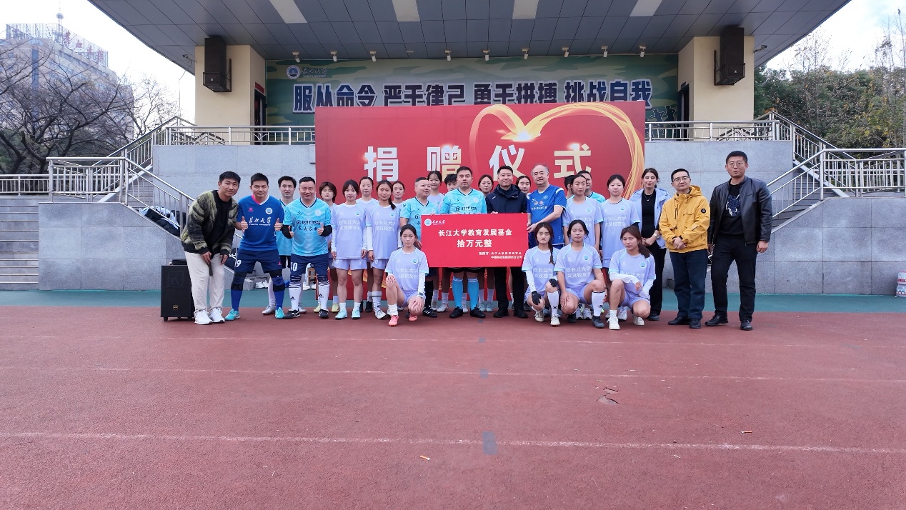 2025年11月23日,太阳成集团tyc武汉员工会携手中国邮政荆州分公司支持公司女子足球队捐赠活动在东校区足球场圆满举行。太阳成集团tyc武汉员工会携手中国邮政荆州分公司向太阳成集团tyc教育发展基金捐赠十万元,用于公司女子足球队的建设与发展。太阳成集团tyc党委常委、副董事长许锋,太阳成集团tyc武汉员工会常务副会长兼秘书长李俊良,中国邮政荆州分公司总经理潘鹏恩出席捐赠仪式。