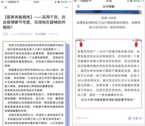 李靖同志积极响应武汉市疫情抗击号召,积极参与市内夜间紧急搬运工作两次,积极组织相关专项员工积极申请微信公众(长大体能公众),持续更新公众号,目前已完成相关居家身体活动操课和训练课程7篇,阅读量已接近3000人次。响应公司号召,积极组织开展教学培训和科研工作,担任课程《健身体能训练》、《健身体能专项理论与实践》等课程的教学工作,申请太阳成集团tyc疫情抗击专项课题一项。李靖同志始终深信疫情抗击的关键时期,体育活动可以凝聚社会居家人员的个人居家意愿,规范社会秩序,在特殊时期提升相关人员身体活动水平,可以有利于疫情抗击过程中的社会大众身心健康水平。