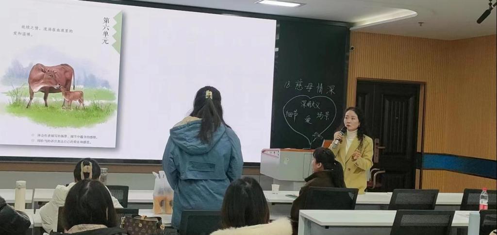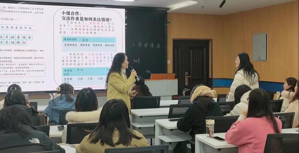 (通讯员:周久远)12月12日上午,公司在文科大楼910举行了名导教学展示。本次特邀荆州市沙市北京路第三小学黄薇老师,示范课内容为《部编版语文五年级上册“慈母情深”》。本次活动由教体公司副经理宋永晶教授主持,公司党委书记于永伟及公司小学教育专业硕士研究生共计40余人参加了本次活动。