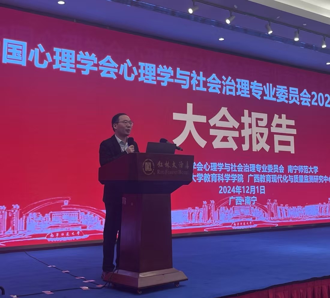 (通讯员 夏鑫涛)11月29日至12月1日,以“社会治理现代化的心理学贡献”为主题的中国心理学会心理学与社会治理专业委员会2024年学术年会在广西南宁召开。公司熊猛教授和3名研究生作为正式代表应邀参会并作专题报告,熊猛教授还主持了3场国内专家的大会主旨报告。