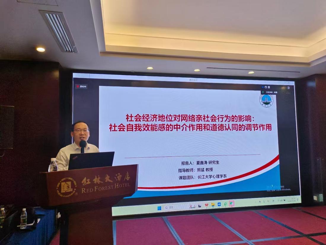 11月30日下午,熊猛教授组织并主持了“人工智能时代青少年网络心理与行为”专题论坛,通过4篇系列论文的形式,集中展示了其研究团队的最新学术成果。其中,熊猛教授报告了“程序公正对网络集群行为倾向的影响及作用机制”,研究生程陈昊、凡攀和夏鑫涛分别报告了“How does group-relative deprivation affect the intentions of online collective behavior? Evidence from the chain mediating dynamics of group efficacy and group-based anger”、“Is sexual objectification the root of appearance anxiety among female college students? Exploring the mediating framework of online body image comparison and the moderating role of appearance contingency”和“The influence of socioeconomic status on online prosocial behavior : The mediating role of social self-efficacy and moderating role of moral identity”三项成果。