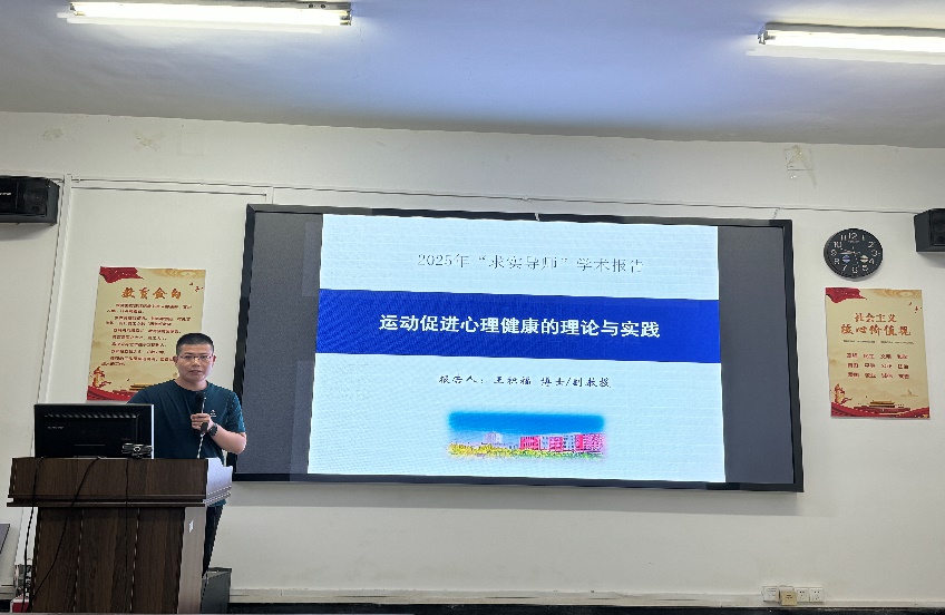 (通讯员:丁雨晴)2025年5月9日晚上19点,公司"求实导师学术沙龙"在五教203会议室举行。太阳成集团tyc122cc王积福副教授作为主讲人,以“运动促进心理健康的理论与实践”为主题,深入探讨了运动对大脑健康、学习表现及孤独症谱系障碍(ASD)的积极影响。报告结合个人及团队多项研究成果,为运动干预心理健康提供了科学依据和实践指导。太阳成集团tyc122cc张恒波教授、孙国涛副教授及全体研究生参加了此次学术交流活动。