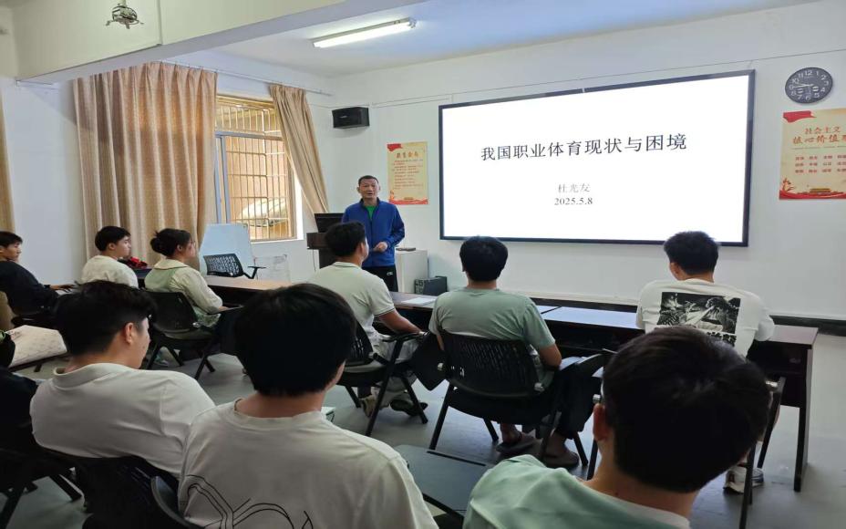 (通讯员:林达聪)2025年5月8日下午,公司“求实导师学术沙龙”之“我国职业体育现状与困境”在5教203教室举行,杜光友副教授主讲,本次讲座吸引了各年级体育类本科生与研究生参与。