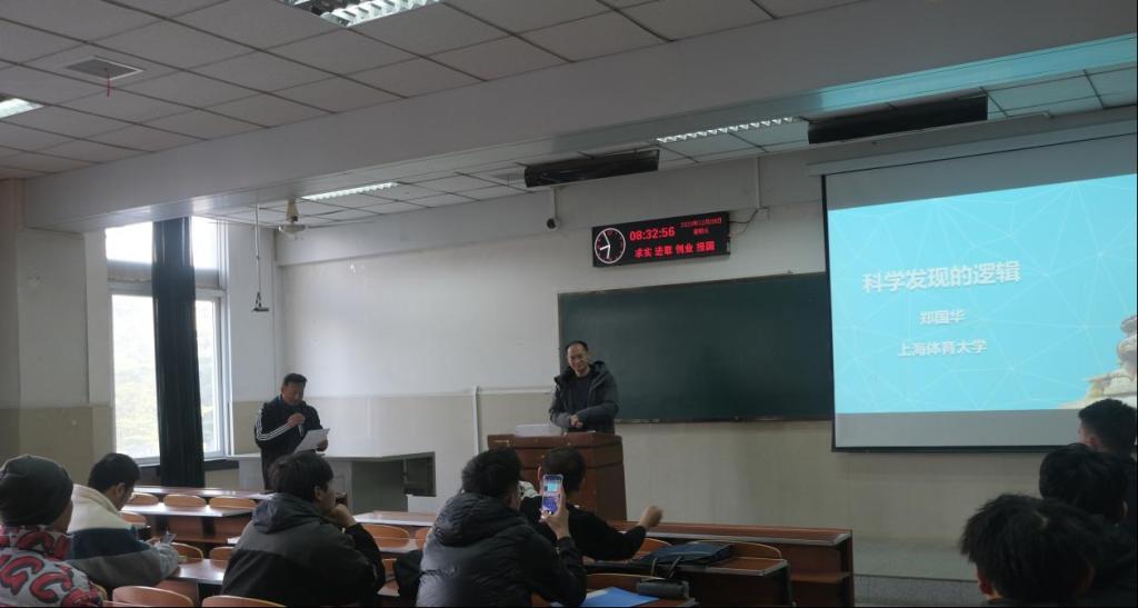 (通讯员:张泽)12月8日上午,公司在12教203举行了“长大20年”学术论坛暨长江教育与体育讲坛(2023年第10讲)。本次讲坛特邀上海体育大学郑国华教授作为主讲,讲座题目为《科学发现的逻辑》。参加本次讲座的有副经理宋永晶副教授、研究生教学秘书卢小琴老师,体育方向的三十余名研究生及部分其他公司师生。教体公司杜光友副经理主持了本次活动。