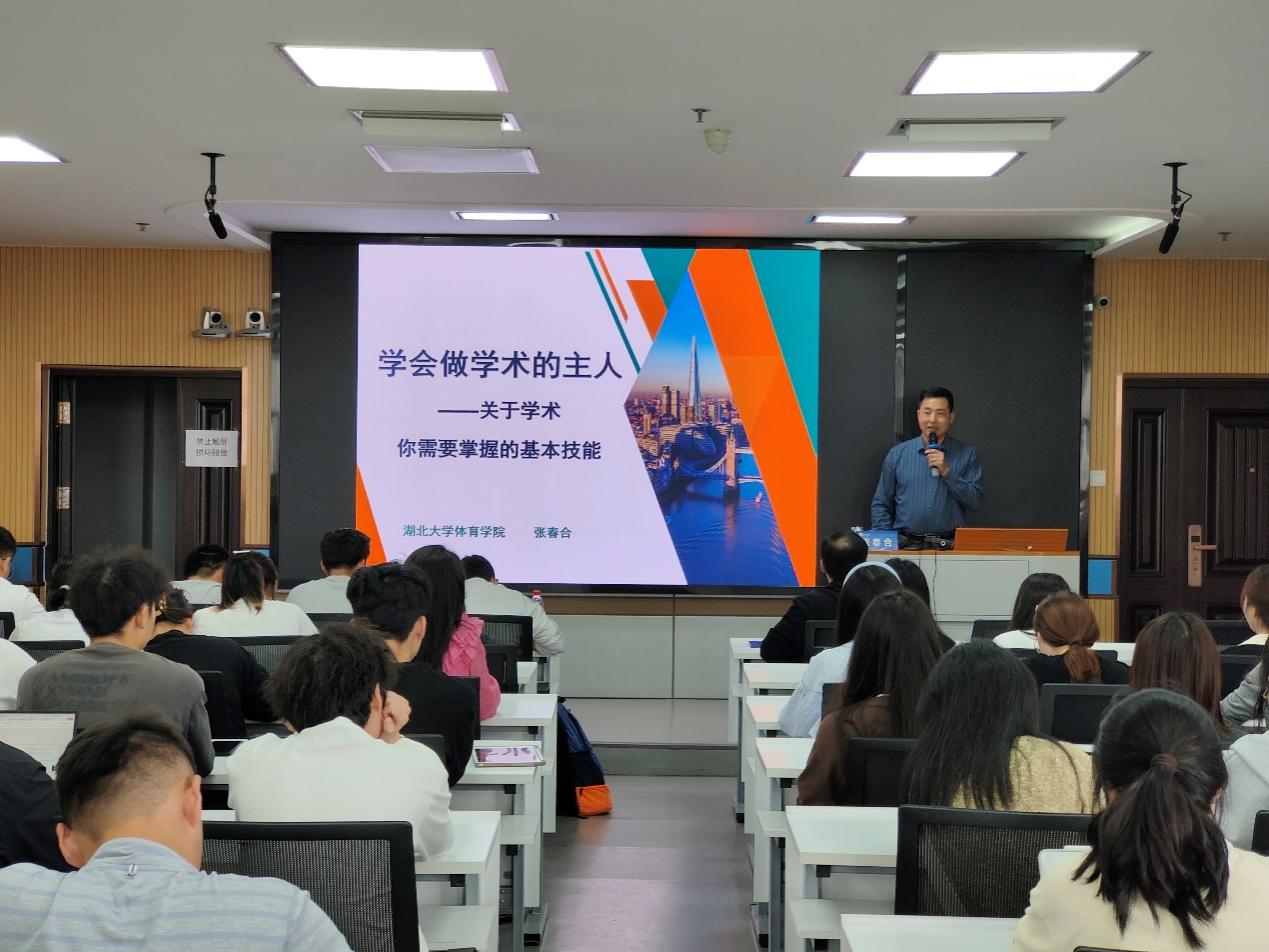 (通讯员 倪梓曦)2024年4月20日下午,湖北大学体育公司经理张春合教授受邀作客“长江教育与体育讲坛”,为公司师生讲授“学会做学术的主人——关于学术,你需要掌握的基本技能”。报告会由熊猛副经理主持,公司全体研究生在文科楼910聆听了报告。