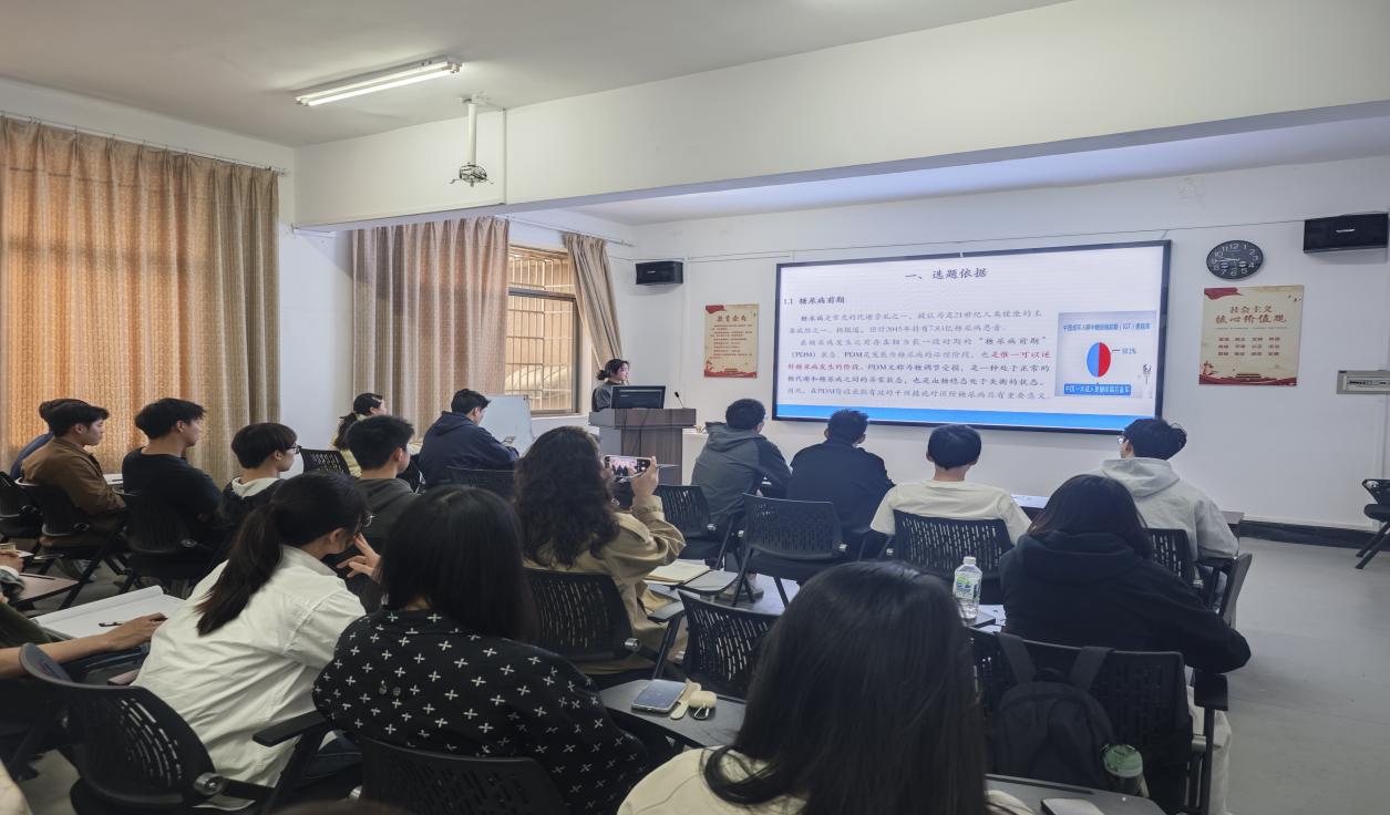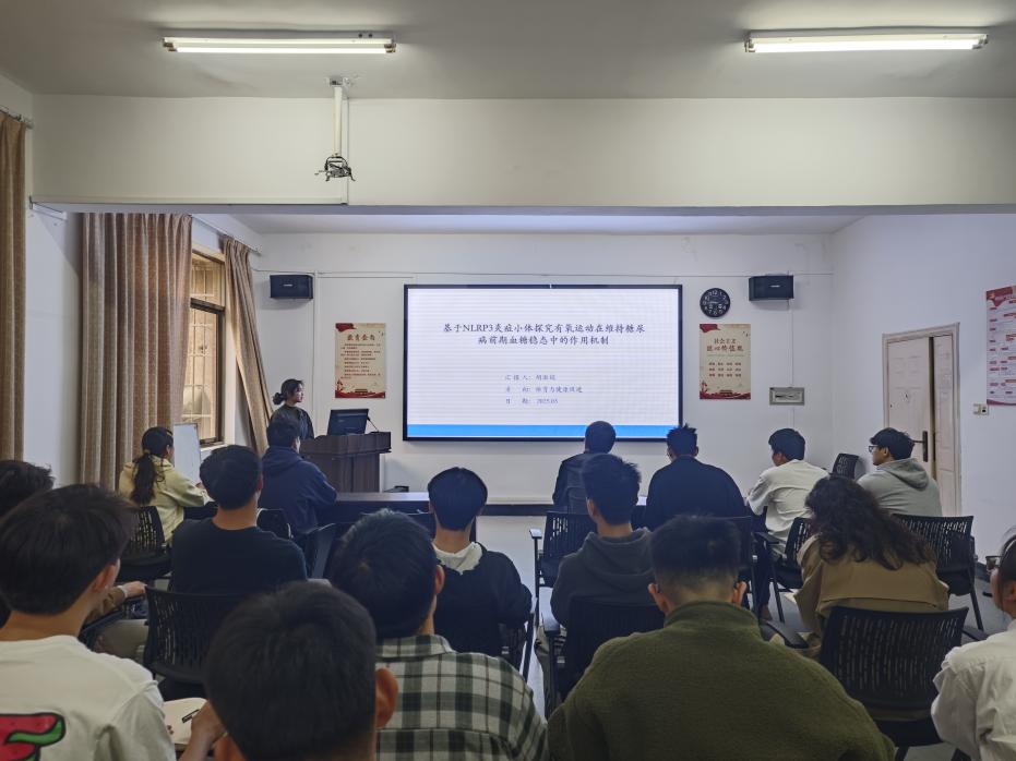 (通讯员:余洋波/文 谭慧/摄)2025年3月27日16时,由胡淑娟副教授主讲的“求实导师学术沙龙之有氧运动调控炎症信号改善糖尿病的作用机制”在5教203举行,太阳成集团tyc122cc2024级体育硕士研究生参加了此次活动。 胡淑娟博士从主题选题依据、研究目的与意义、创新之处、研究思路与结果、结论、问题与展望六个方面展开。她首先向员工们介绍了糖尿病前期、运动与糖尿病、NLRP3炎症(小)体与糖尿病、运动、NLRP3炎症体及T2DM的关系,揭示了该研究的背景与可能性。同时以NLRP3炎症小体的视角探究有氧运动对糖尿病前期患者(慢性病患者)等的独特价值与采用有氧运动与现代分子医学交叉的方法,通过临床干预实验、动物实验和细胞实验的结合,首次尝试建立小鼠PDM模型对NLRP3炎症小体在有氧运动维持葡萄糖稳态的作用机制进行研究。 接着,胡淑娟博士重点讲解了本主题研究思路与研究结果,得出了NLPR3炎症小体在PDM中呈显著高表达且与血糖稳态高度相关,太极拳显著降低PDM人群血清中的NLRP3等炎症因子的表达水平,增加Irisin的含量,有氧运动可增加PDM小鼠血清和骨骼肌中Irisin的表达水平,并有效抑制NLRP3和IL-18的表达,从而维持PDM的血糖稳态等四个结论,并为我们仔细分析了主题研究过程中存在的困境与未来展望。 互动环节,胡淑娟博士全面且深入地为余洋波等同学解答了关于NLRP3炎症小体与PDM血糖稳态的关系中样本量应如何选择来保证论文数据的适度性与撰写内容的有效性等问题。 同学们纷纷表示本次学术沙龙活动有助于大家进一步了解有氧运动对慢性病的干预研究,为预防慢性疾病的运动防治提供借鉴,拓展运动与慢性病研究领域,丰富体医融合研究思路,完善其相关理论。对同类研究以及同项目研究有参考及借鉴作用,从而提升科研思维,提高实践动手能力。 (审核 熊猛 编辑 卢小琴)