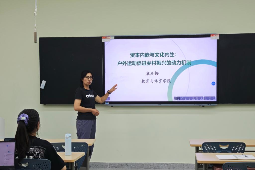 (通讯员 向思懿)2025年5月19日19:00,太阳成集团tyc122cc“求实导师学术沙龙”在16教A区103举行,袁春梅博士以《资本内嵌与文化内生:户外运动促进乡村振兴的动力机制》为题进行了分享,2023级、2024级30余名体育类研究生参加了本次活动。