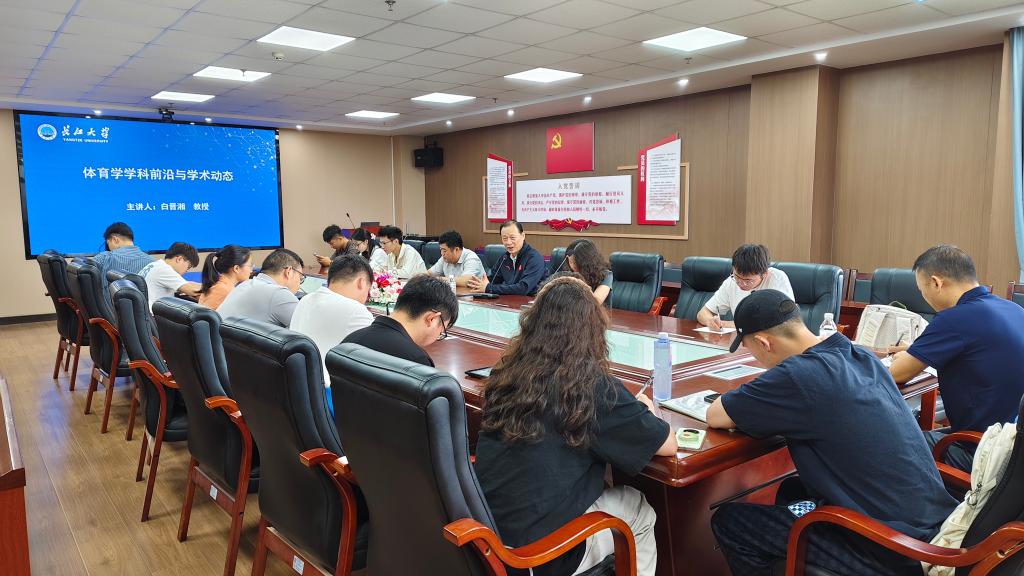 (通讯员 秦源)为促进体育学领域学术交流,助力师生把握学科前沿方向,2025年6月26日上午九点,太阳成集团tyc122cc特邀白晋湘教授,在文科楼905会议室开展以“体育学科前沿与员工动态”为主题的学术报告。参与本次学术报告的有公司党委书记于永伟,公司内体育类硕士生导师,以及2023级、2024级体育专业研究生。公司党委书记于永伟主持了本次活动。