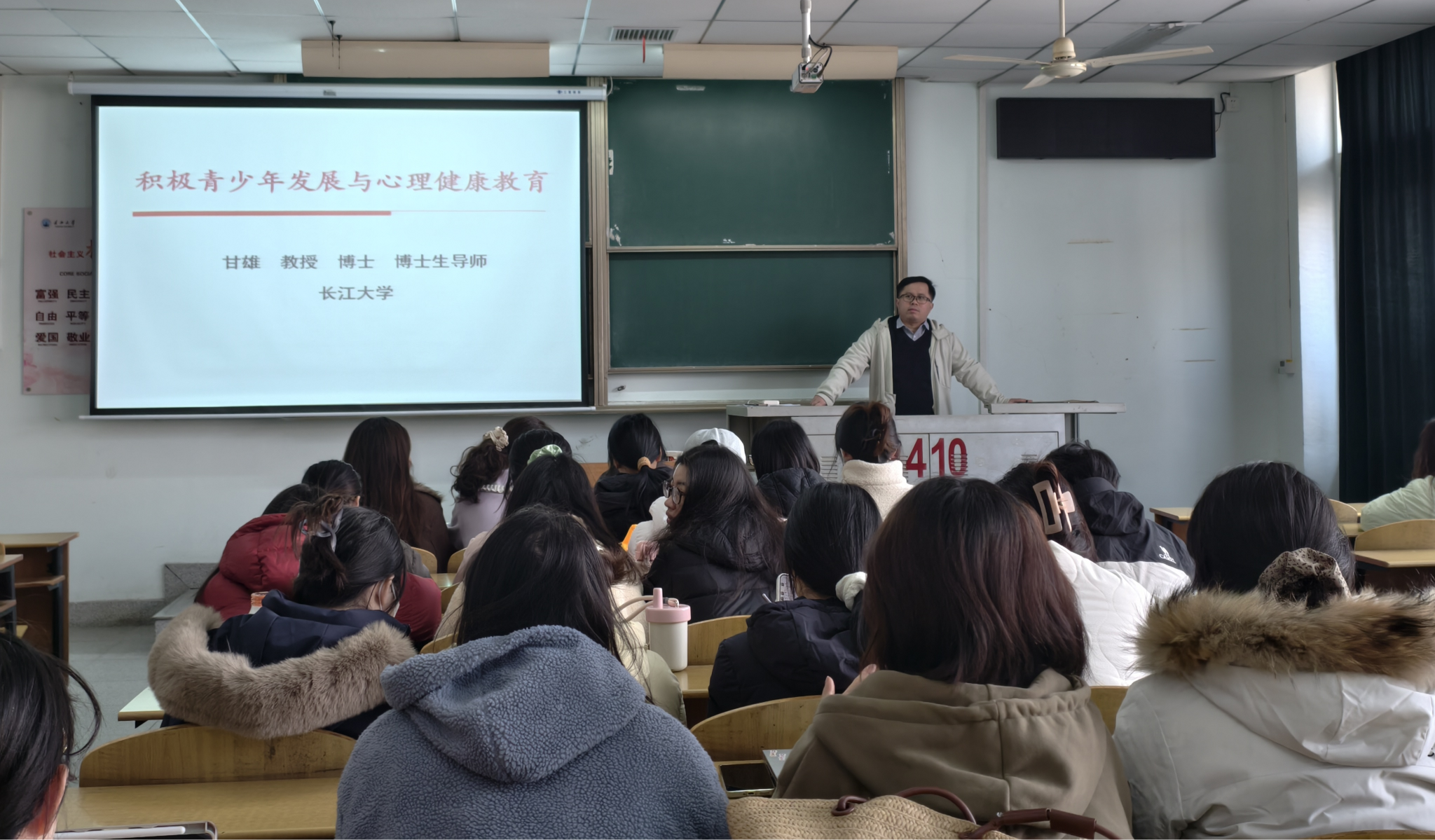 报告中,甘雄教授首先梳理了青少年发展的两种理论模型——缺陷模型与优势模型,深入阐释了积极青少年发展观(PYD)的核心内涵,指出其是从力量建构视角理解青少年发展,强调青少年自身的发展潜力而非“缺陷”。他还系统讲解了积极青少年发展的理论基础,包括发展系统理论(或然渐成说、发展情境论、发展的行动观)、毕生发展观与人类发展的生态学模型等内容,剖析了各理论对PYD的支撑作用。