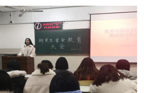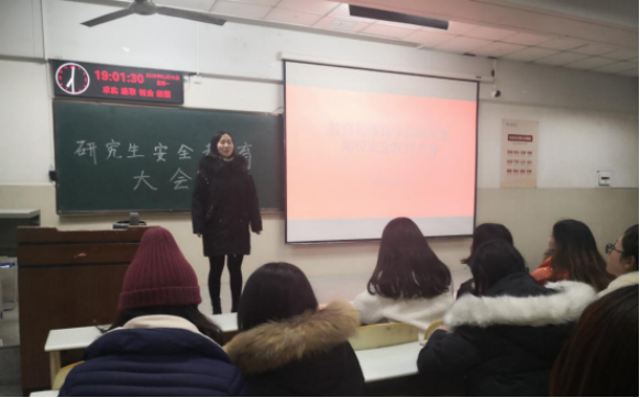 (通讯员 苏春来)为了员工安全着想,1月6日晚7时许,公司在12教104教室举办了研究生“寒假安全教育大会”。此次与会的人员有辅导员任雯婷以及全体研究生,主讲人为邵倩。