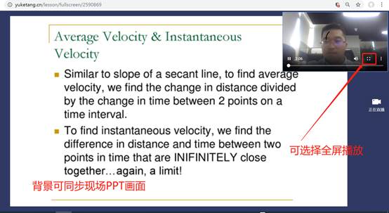进入课程观看页面后,按照图8的箭头指示点击进入当前直播页面,选择【进入大屏显示】,如图9所示,即可进入大屏直播页面。