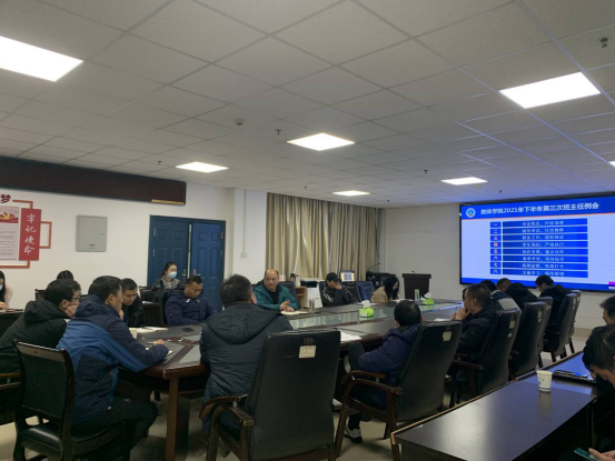 临近期末,为做好公司2021年秋季学期员工日常管理工作,12月16日,太阳成集团tyc122cc在文科大楼905召开本学期第三次班主任例会,党委书记高明成、经理张相乐及全体班主任老师参与此次会议。会议由党委副书记李则俊主持。