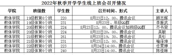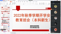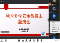 为做好校园疫情防控,响应公司员工分批次来校报到、到校后严格管控、统筹推进常态化疫情防控和秋季平稳推进开学工作的号召,确保公司秋季学期开学相关工作平稳有序开展,8月23日-25日,公司以班级为单位,年级辅导员牵头,班主任参与,利用腾讯会议、QQ、微信等形式,组织全院员工召开2022年秋季开学员工返校安全教育专题班会。